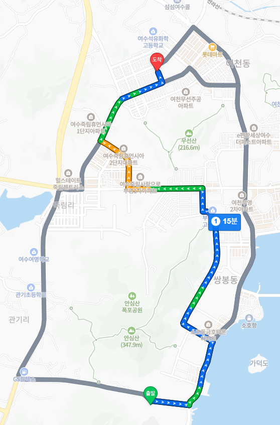 - 여수대학교: 약 2~3km (자동차 5분)